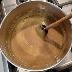 To boost and insure that caramel and butterscotch flavor I was after, I added some butter and brown sugar to the pan and continued to stir constantly until the sugar was completely integrated and there was no sign of grittiness to the mixture.